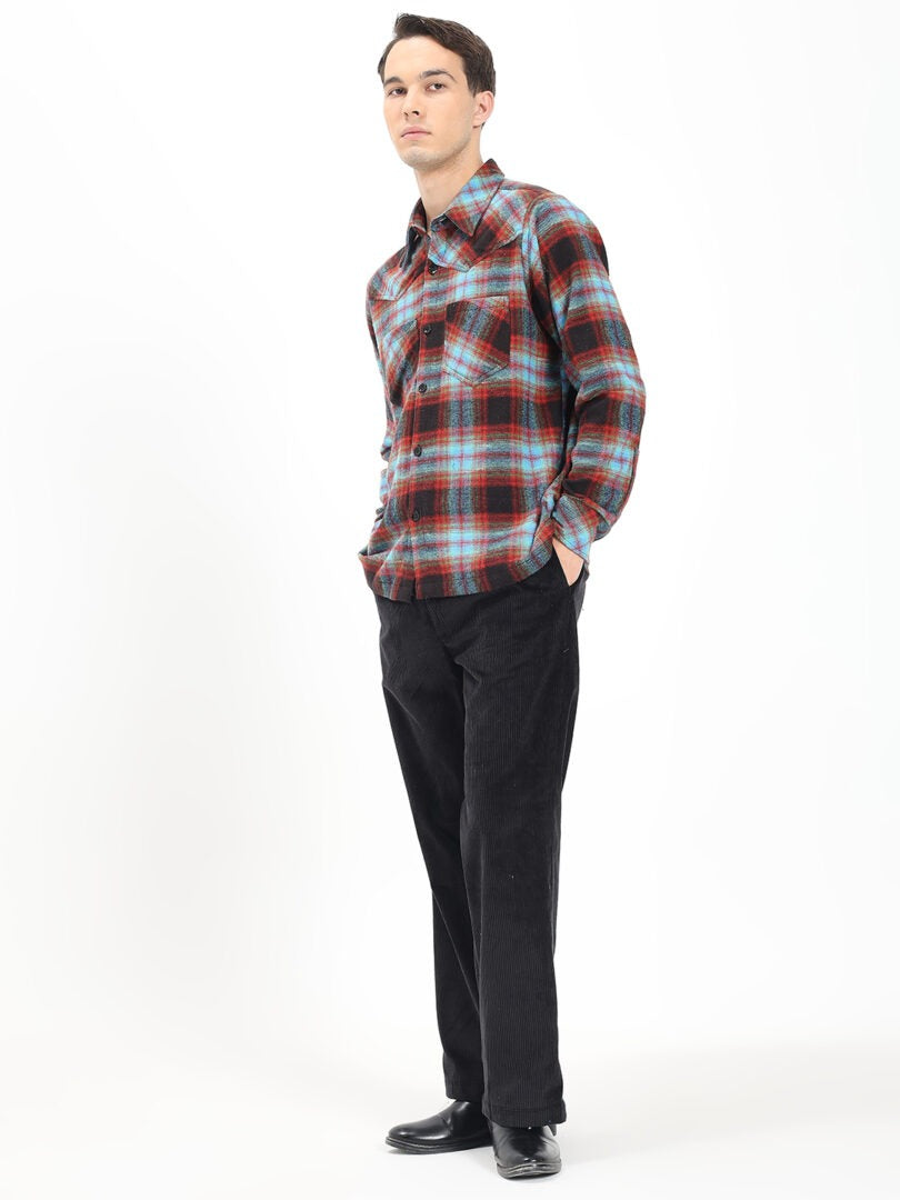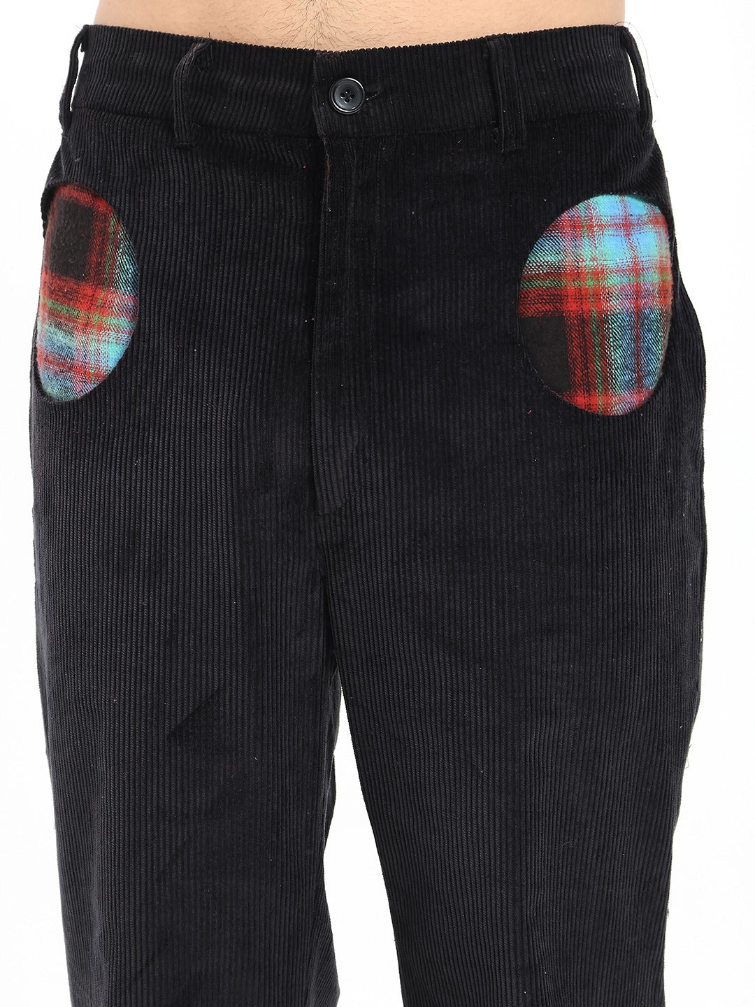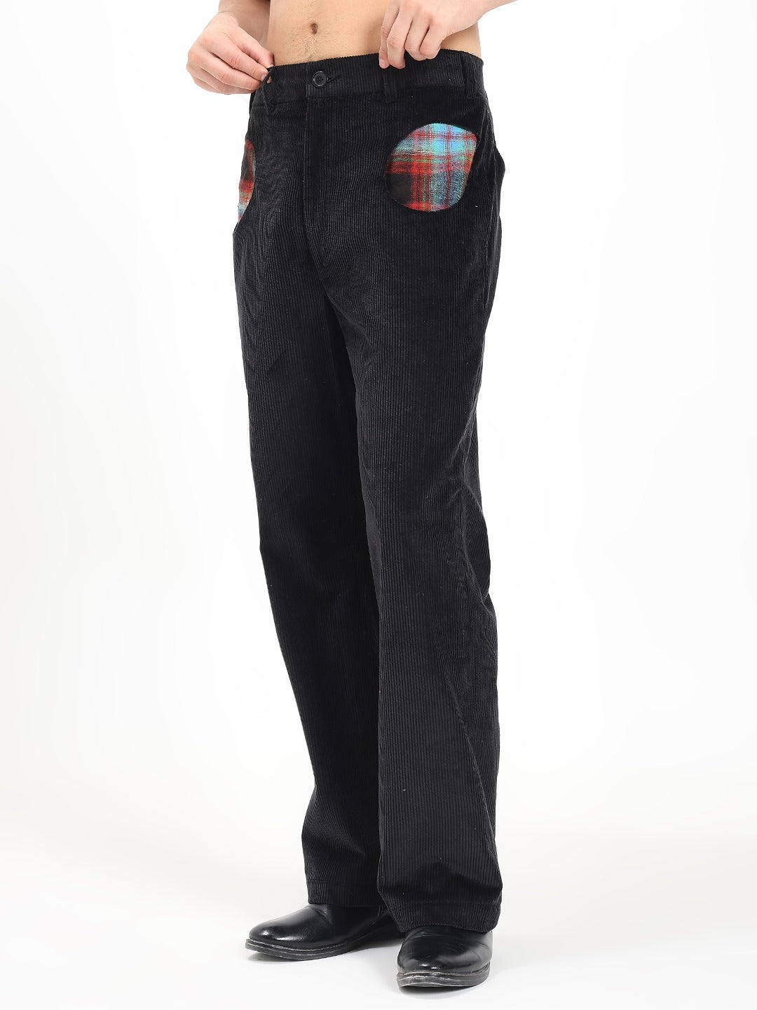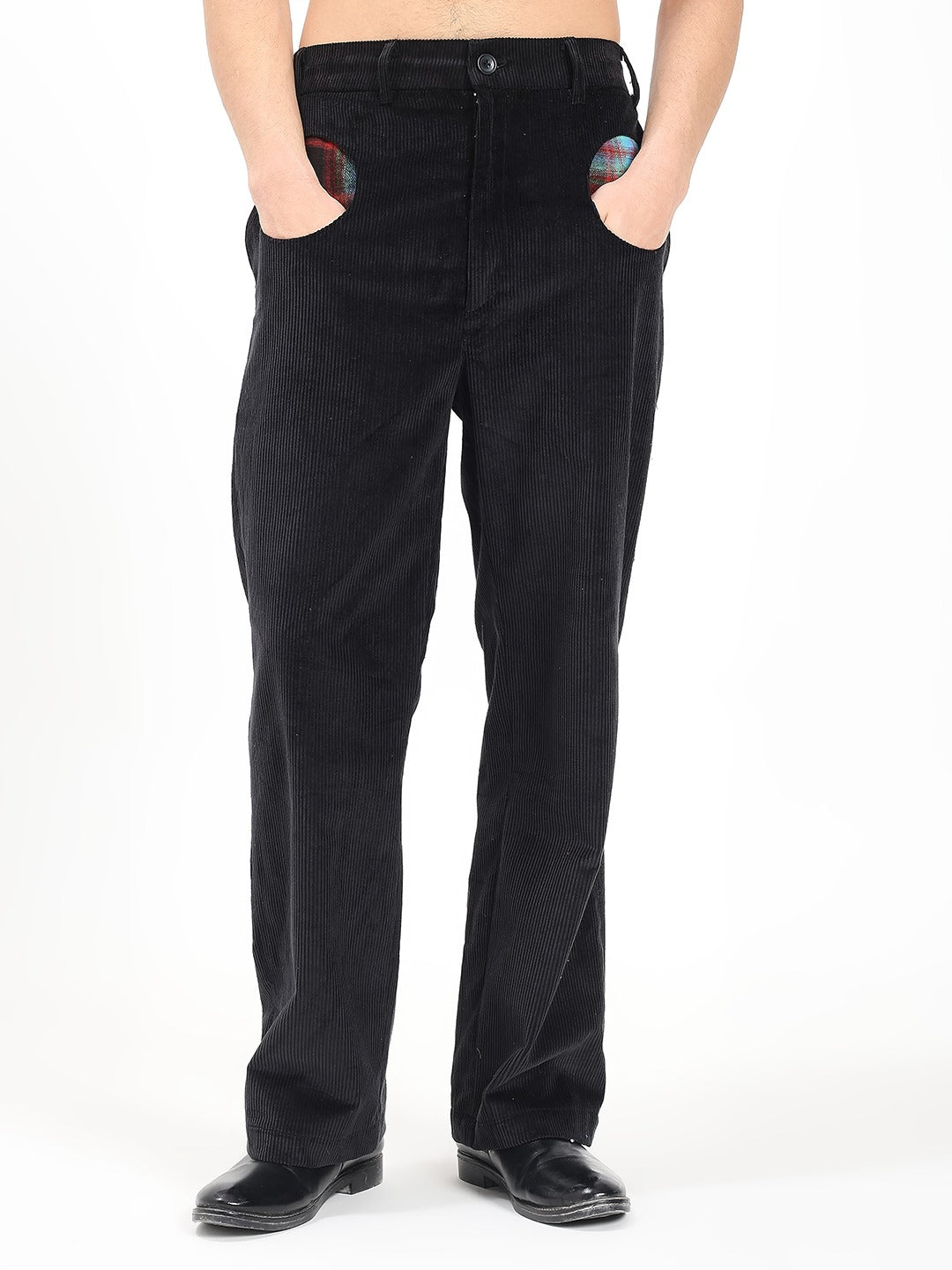 Functional, warm, and effortlessly cool — these black cord pants are crafted from heavy corduroy fabric for maximum comfort and structure. Designed with six thoughtfully placed pockets, they balance practicality with style: two round front pockets lined with plaid for a subtle touch of detail, two clean seam pockets for everyday essentials, and two back yoke seam pockets that add shape and utility. Cozy yet refined, these pants are perfect for cooler days when you want style without compromising on warmth. Versatile, durable, and made to move with you.