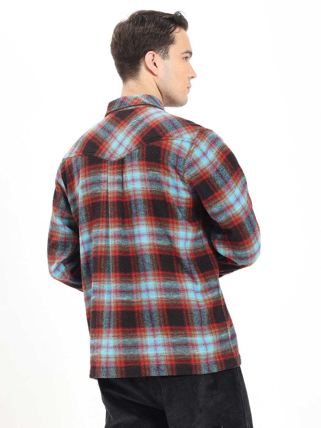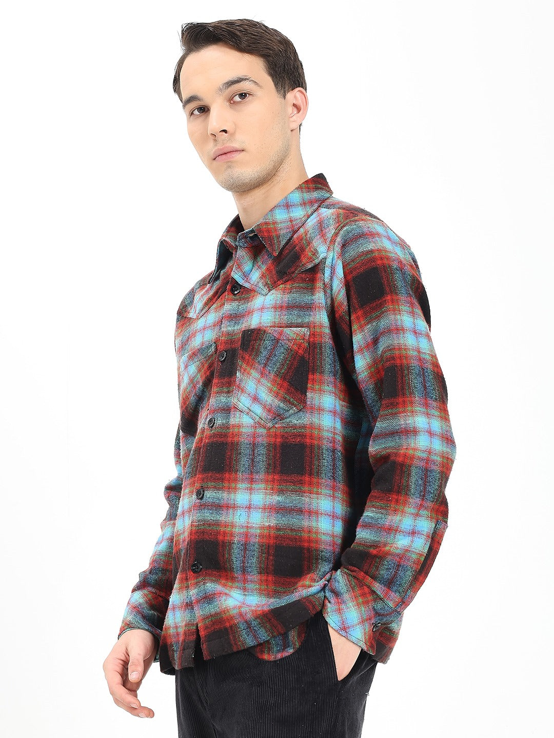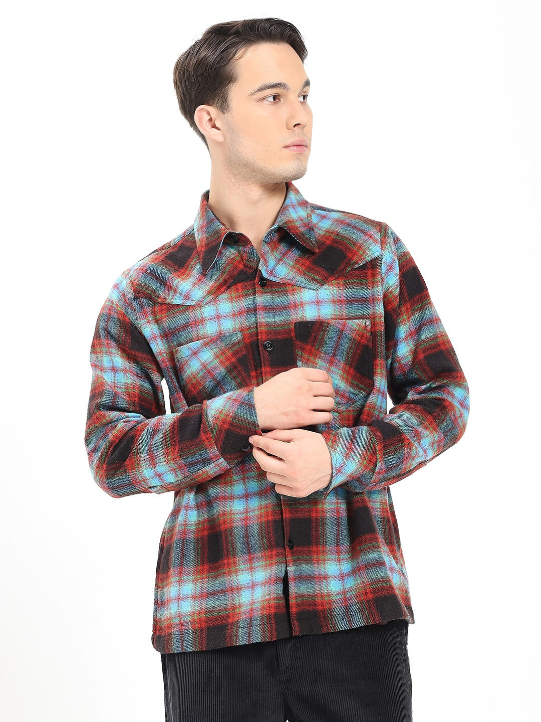 Classic Western charm meets cozy sophistication in this cowboy-style plaid shirt. Crafted from warm, soft plaid fabric, it features distinctive front and back triangle yokes that give it an authentic ranch-inspired silhouette. The full sleeves add comfort and structure, making it perfect for layering or wearing on its own. Designed to feel timeless yet stylish, this piece brings a touch of rugged elegance to cooler days — effortlessly versatile and always in fashion.
